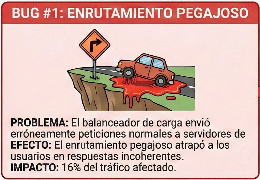 Ahí comenzó una investigación que llevó semanas. Y lo que encontraron fue inesperado: no era un bug, sino tres. Tres fallos independientes, solapados, que se reforzaban entre sí.
