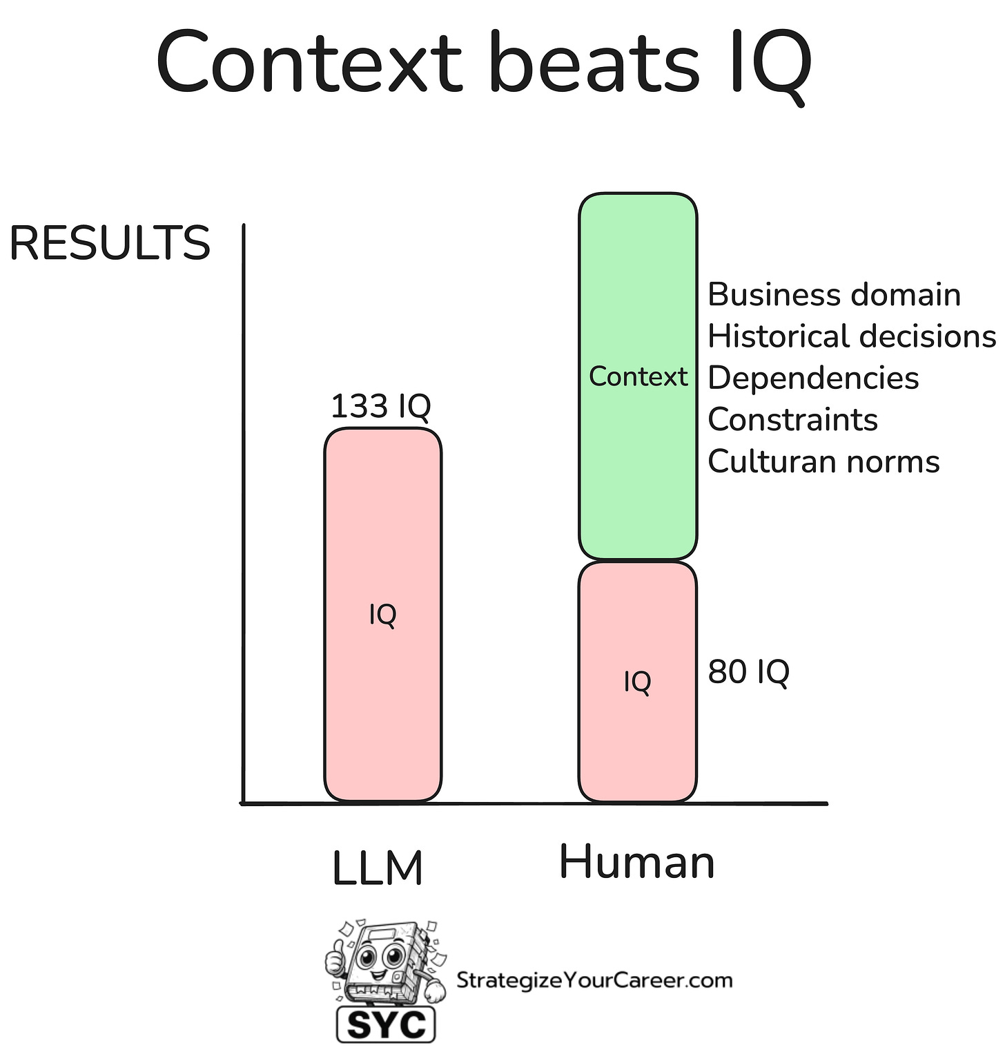 Imagina esto: llevas tres años en tu empresa y ahora llega un nuevo empleado con mayor IQ. Superarás a este nuevo empleado en su primer día. Entregas más rápido porque conoces los flujos de aprobación y las dependencias ocultas. Previenes regresiones porque recuerdas incidentes pasados y casos límite. Reduces tiempos de ciclo porque sabes exactamente dónde obtener respuestas sin esperar. Navegas dependencias entre equipos porque sabes a quién involucrar y cuándo.